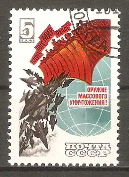 Briefmarke Sowjetunion Mi.Nr. 5327 o Aufruf zur Beseitigung der Massenvernichtungswaffen 1983 / Friedensdemonstration, Raketen, Erdkugel #