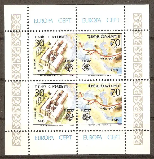 Briefmarke Türkei Block 21 ** (Mi.Nr. 2600-2601) Europa CEPT 1982 – Sultanhan-Karawanserei & Historische Seidenstrasse #20241348