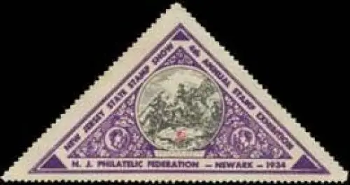 New Jersey State Stamp Show and Exhibition, Briefmarken-Ausstellung, Größe/Zustand: 4x7 , guter Zustand, Original alte Reklamemarke die seinerzeit für die Werbung benutzt wurde