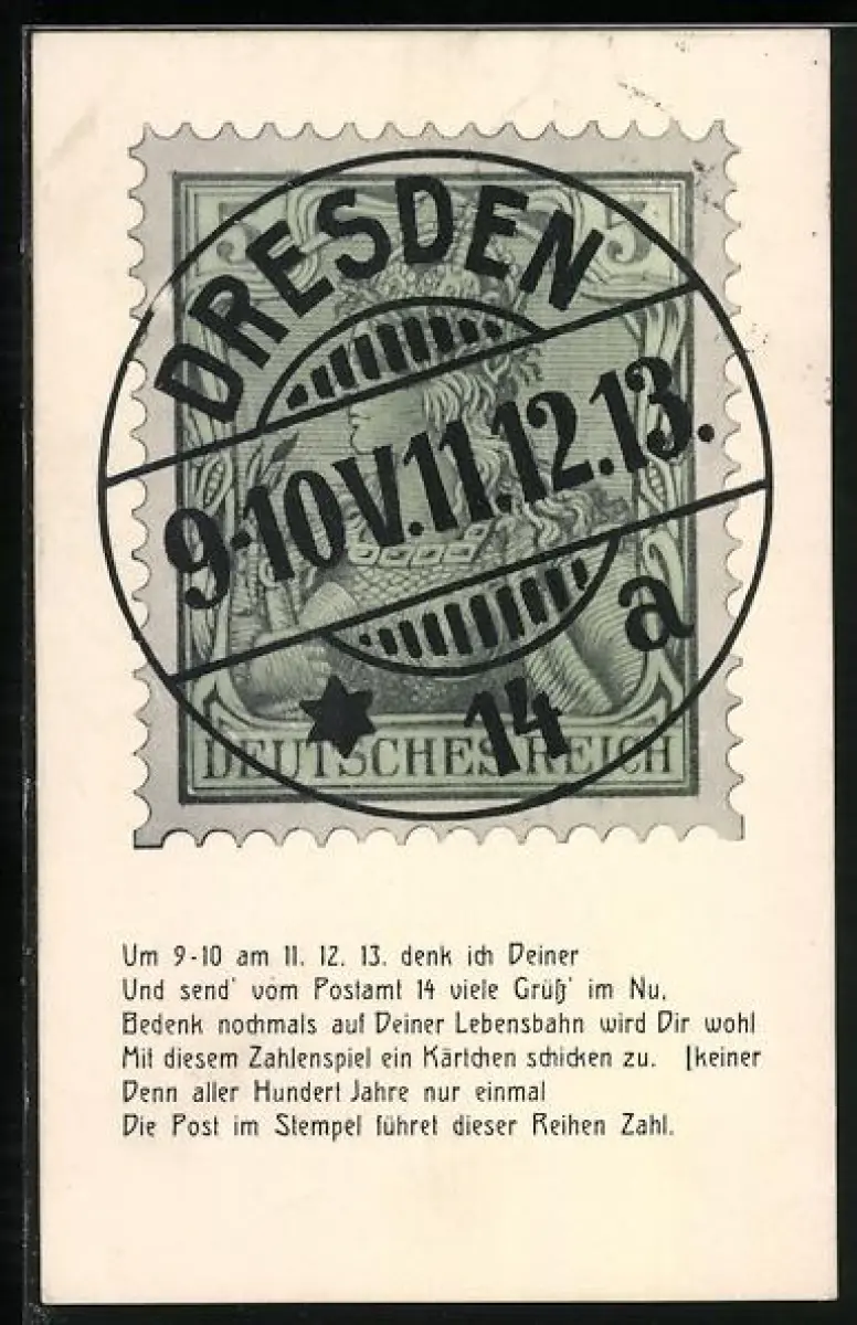 Briefmarken-AK Dresden, 9-10 V. 11.12.13 Postamt 14