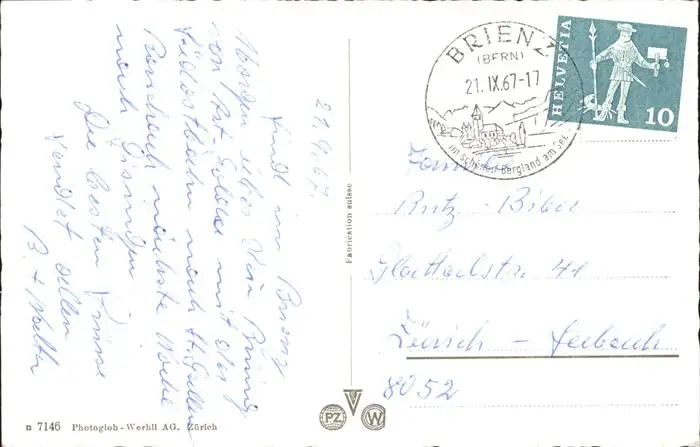Brienz BE Panorama Brienz postalisch gelaufen 1967 gute Erhaltung Alte Ansichtskarte Postkarte hz Woerer