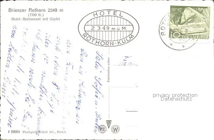 Brienzer Rothorn BE Hotel Rothorn Kulm mit Gipfel Brienzer Rothorn postalisch gelaufen 1921-1965 Erhaltung siehe scans Alte Ansichtskarte Postkarte hz Woerer
