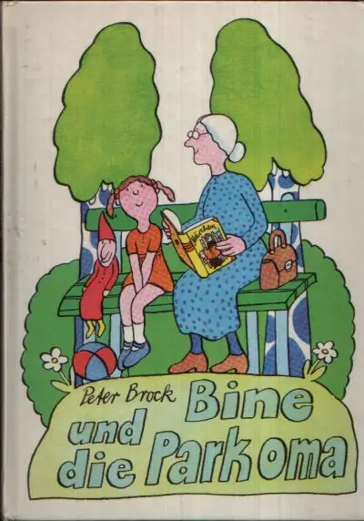 Bine und die Parkoma; Brock, Peter; Kinderbuch; Geschichten; Bine; Kleines Mädchen; Möchte gern Oma haben; Märchen vorlesen; Trifft alte frau im Park; Gleicht Oma aus Buch aufs Haar