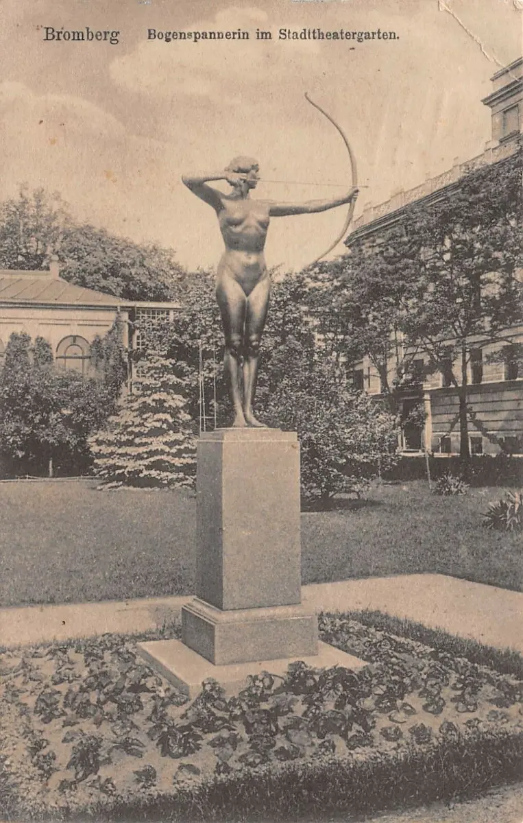 Bromberg (Bydgoszcz) Bogenspannerin im Stadttheatergarten Feldpost AK 1917
