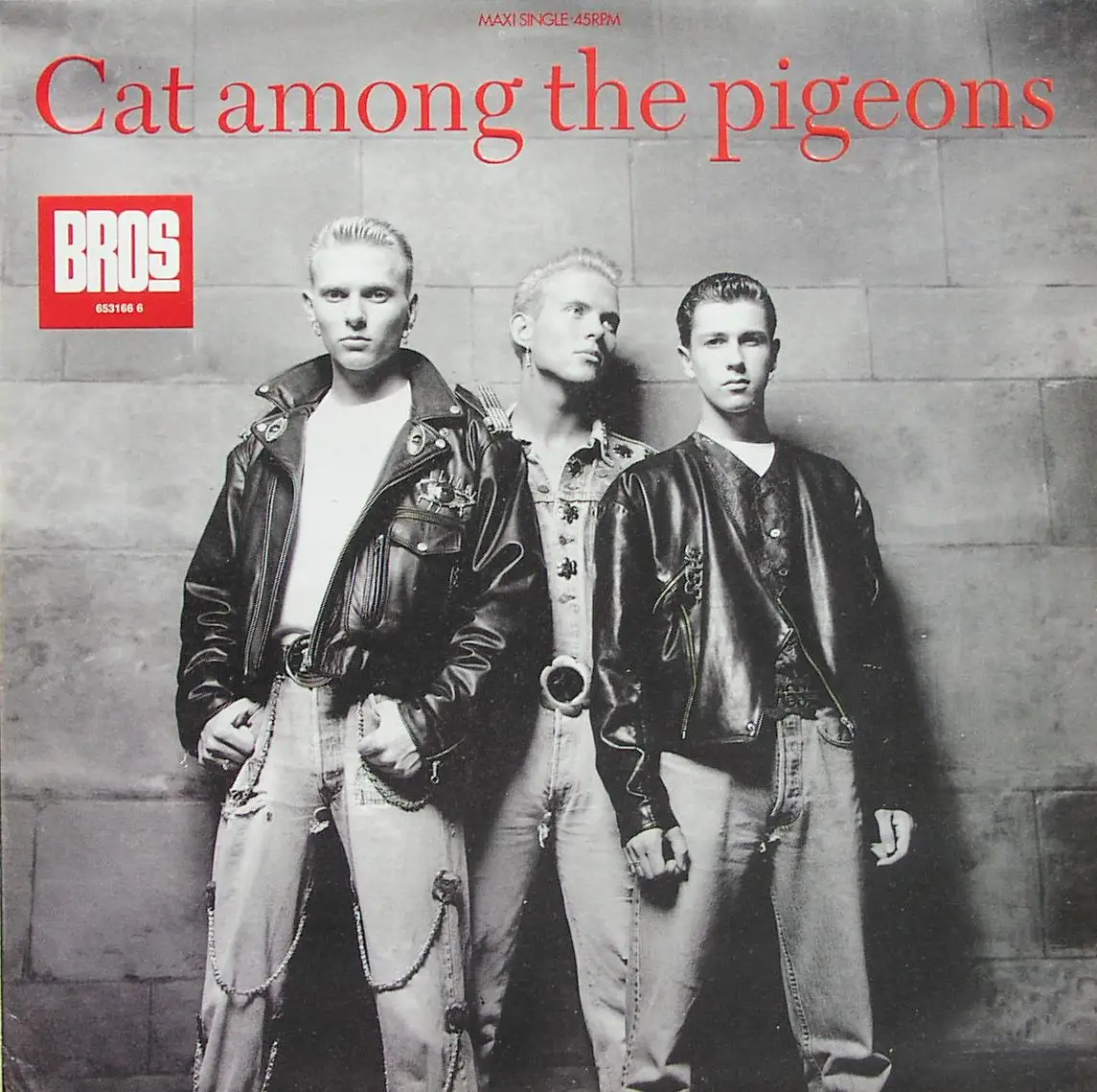 12" Maxi Bros - Cat Among The Pigeons / Silent Night, Zustand Platte VG+ Hülle M-; Made in Netherlands 1988 CBS 653166 6, Tracks 4:05, Silent Night 3:50, I Owe You Nothing 5:38, Love To Hate You 6:49