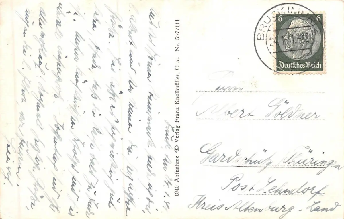 Rückseite: gelaufen 1941 von Bruck (Mur)