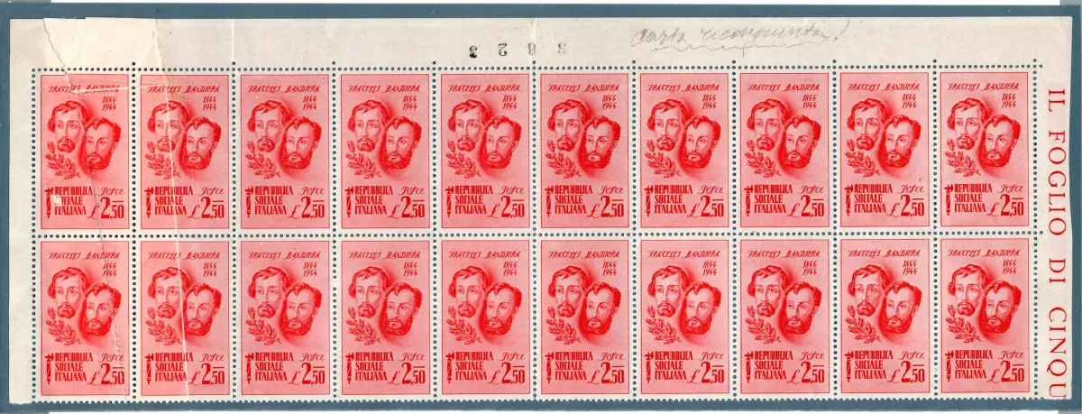 MNH - Vollgummi - - Brüder Flagge Lire 2,50 Nr. 514d wunderschöner Windblock mit den vier linken Exemplaren auf wiedervereinigtem Papier gedruckt - wirkungsvolle Vielfalt - perfekt neu mit Vollgummi - RSI Sammlerrarität Cod. 2524/WEB