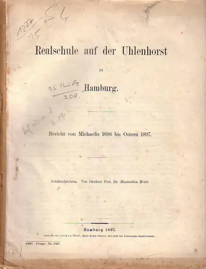 Brütt, Maximilian: Realschule auf der Uhlenhorst zu Hamburg. Bericht von Michaelis 1896 bis Ostern 1897. Programm Nummer 767.