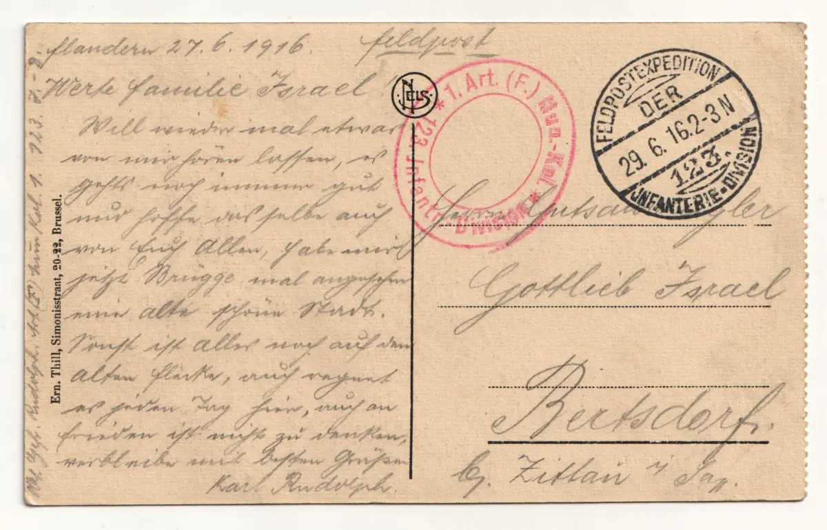 Brugge. De Blinde Ezelstraat. jahr 1916. Feldpost