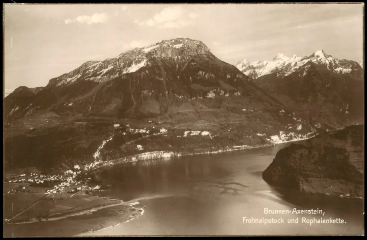 Brunnen SZ-Ingenbohl Panorama-Ansicht Brunnen-Axenstein, Frohnalpstock und Rophaienkette 1920