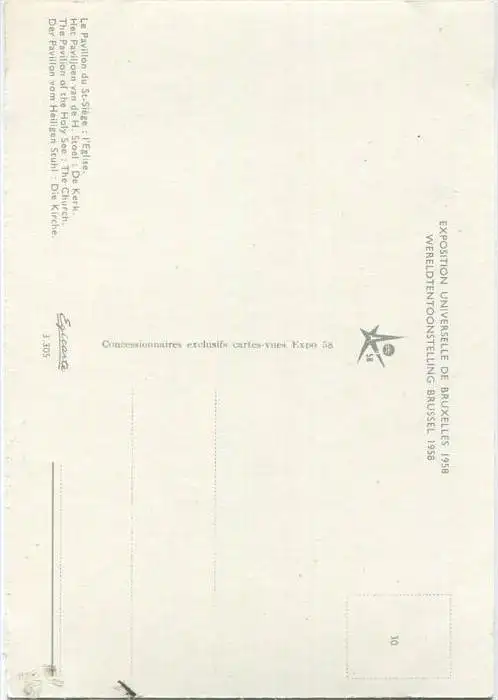 Bruxelles EXPO 1958 - Pavillon du Saint-Siège - der Heiligen Stuhl - Die Kirche