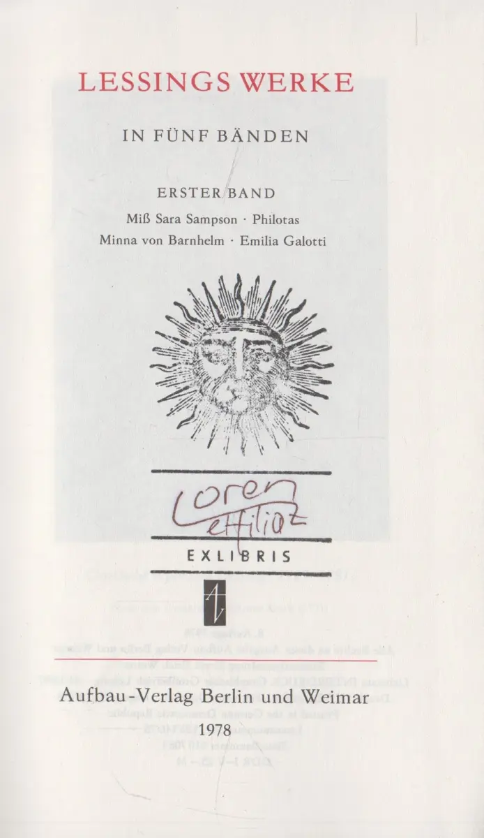 ArtikeldetailsLessings Werke in fünf Bänden Lessing, Gotthold Ephraim