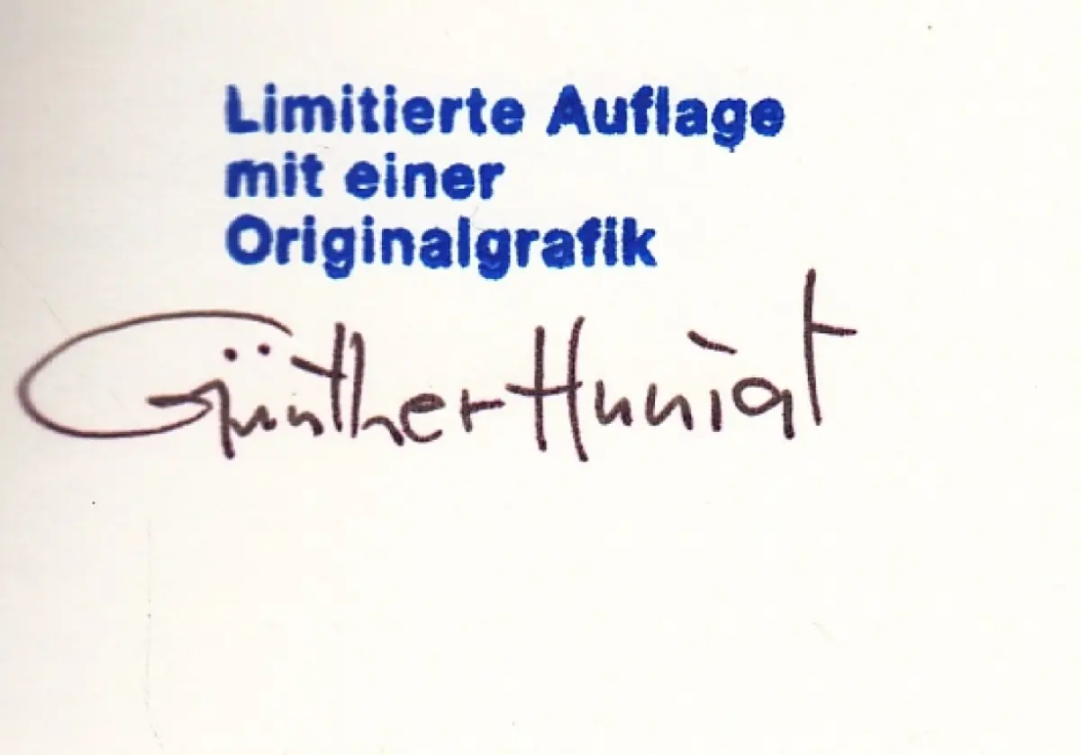 Bemerkungen: Zustand: Sauber und gut, die Grafik mit changierendem Effekt // Mit zahlreichen Abbildungen und Fotos. Herausgegeben von Stadt- und Kreissparkasse Leipzig, Unternehmenskommunikation, Vorwort von Peter Krakow. - auf dem Titel mit dem Eindruck - Limitierte Auflage mit einer Originalgrafik , darunter die Signatur von Günther Huniat, beiliegend die Originalgrafik von Huniat : "S." 30/40 G. Huniat / 05, original signiert (Siebdruck ?)