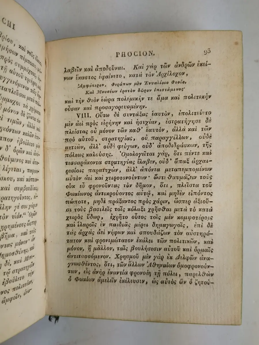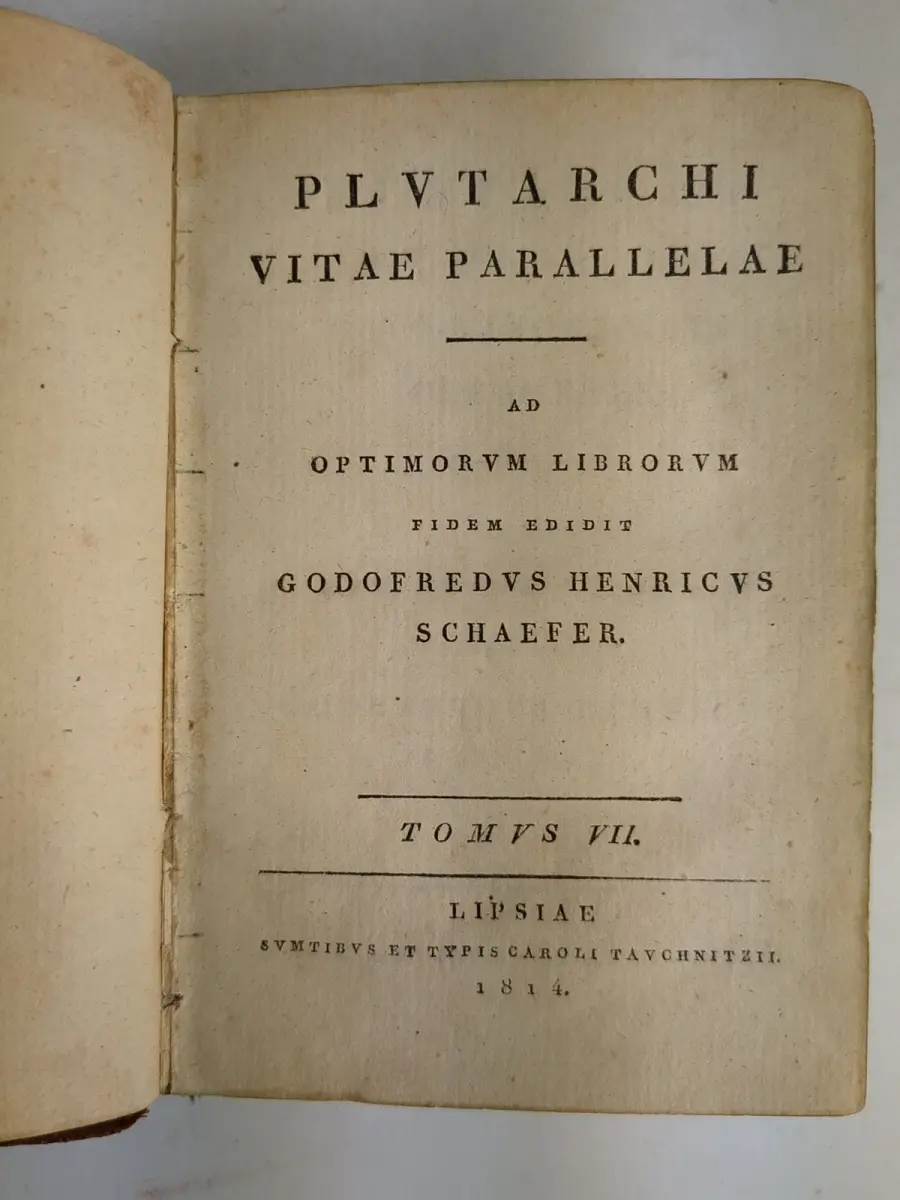 Bemerkungen: Zustand: Einband berieben, Ecken etwas bestoßen, mit Randläsuren, hinterer Vorsatz mit Bleistift-Notizen // Altgriechische Ausgabe. Text in Antiqua