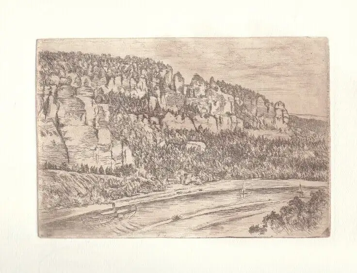 Bemerkungen: Zustand: Sauberes Blatt // Nachlassstempel auf der Rückseite. Kunstgrafik. Druckgröße: 18 x 12 cm, Gebhardt, Rudolf.(1894 - 1985). Maler und Grafiker. Studium an der königlichen Kunstgewerbeschule Dresden. Studium an der Staatlichen Akademie für Graphische Künste Leipzig bei Alois Kolb und Hans Alexander Müller. und an der Kunstgewerbeschule Dresden bei Richard Guhr. Mitglied der Künstlerkolonie Hellerau. Blatt aus der Nachlass zur 1994 Sonderausstellung im Pirnaer Stadtmuseum anläßlich seines 100