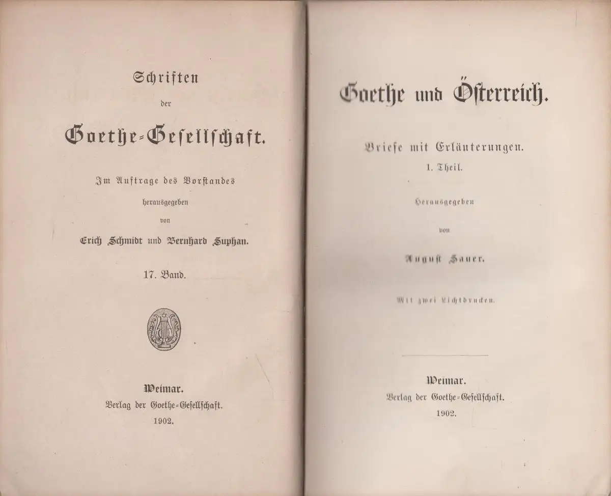 Verlag der Goethe-Gesellschaft, 1904. 418 / 368 Seiten 21,0 x 13,5 cm, Leinenbände mit Marmorschnitt