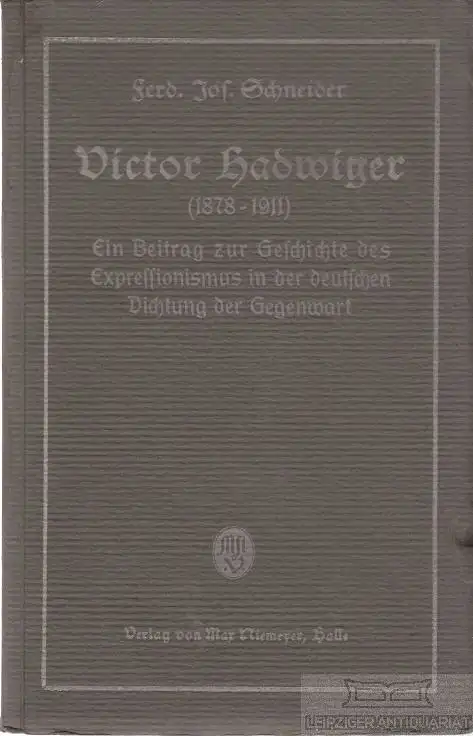 Schlagworte: Victor Hadwiger (1878-1911) - Schneider, Ferd. Jos, Biographien, Sprach- & Kulturwissenschaften, Schriftsteller, Literaturwissenschaft