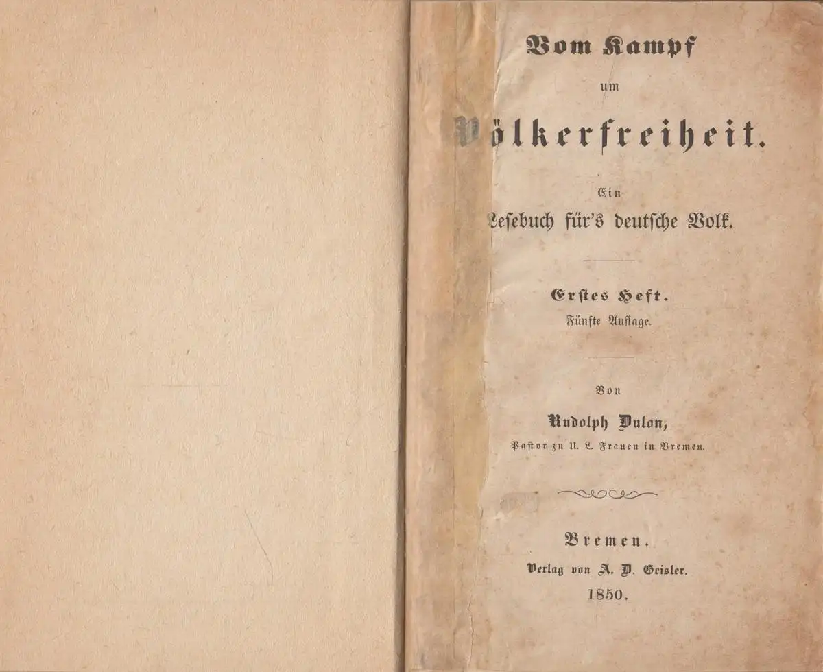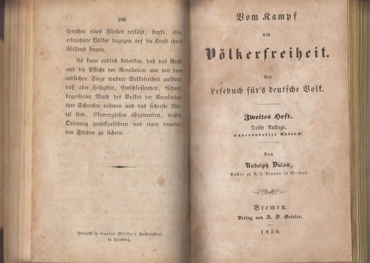 Geisler, Bremen, 1850. 196, 291 Seiten 17,5 x 11,5 cm, Halbleinenband (Nachbindung)