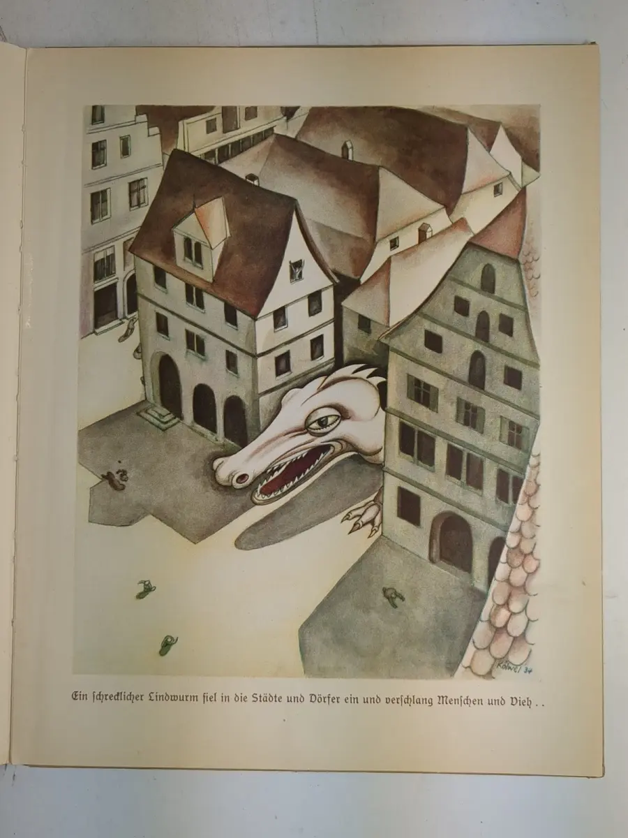 Bemerkungen: Zustand: Einbandkanten leicht berieben, der Rückdeckel gering fleckig, der vordere fliegende Vo0rsatz mit radiertem Eintrag, der Buchblock sauber und gut // Textdruck in einer Fraktur, ohne Angabe zum Erscheinungsjahr. Mit zahlreichen ganzseitigen farbigen Abbildungen sowie einfarbigen Abbildungen, die Zeichnungen Koelwels mit 1935 datiert