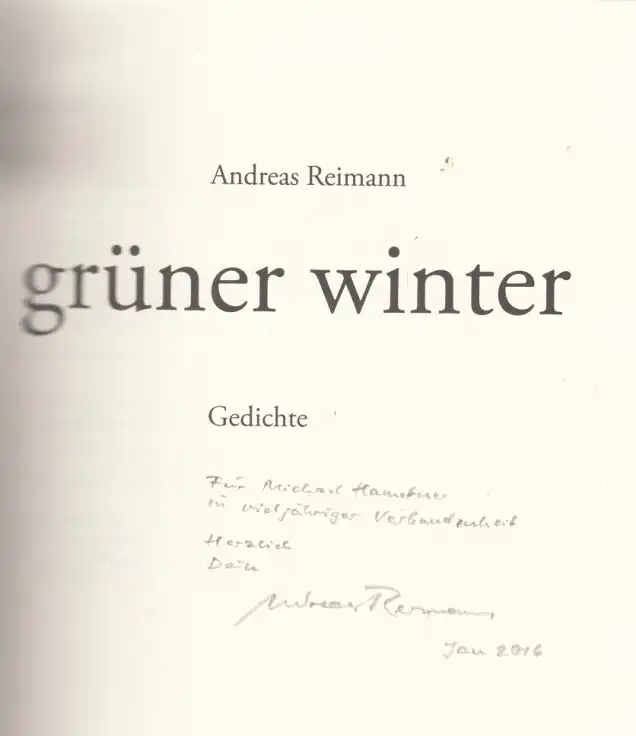 Schlagworte: Widmungsexemplar - Reimann, A, Literatur und Unterhaltung, Literatur des 21. Jahrhunderts, Lyrik und Gedichte, Signierte Bücher, Widmungsexemplare