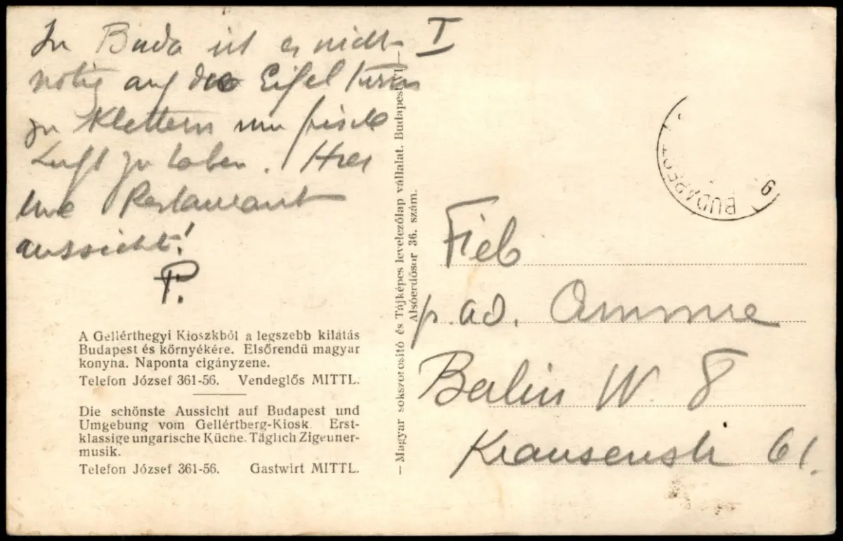 Budapest Caffe Restaurant, Gellérthegyi Kioszk, Kávéház-Vendéglő 1940