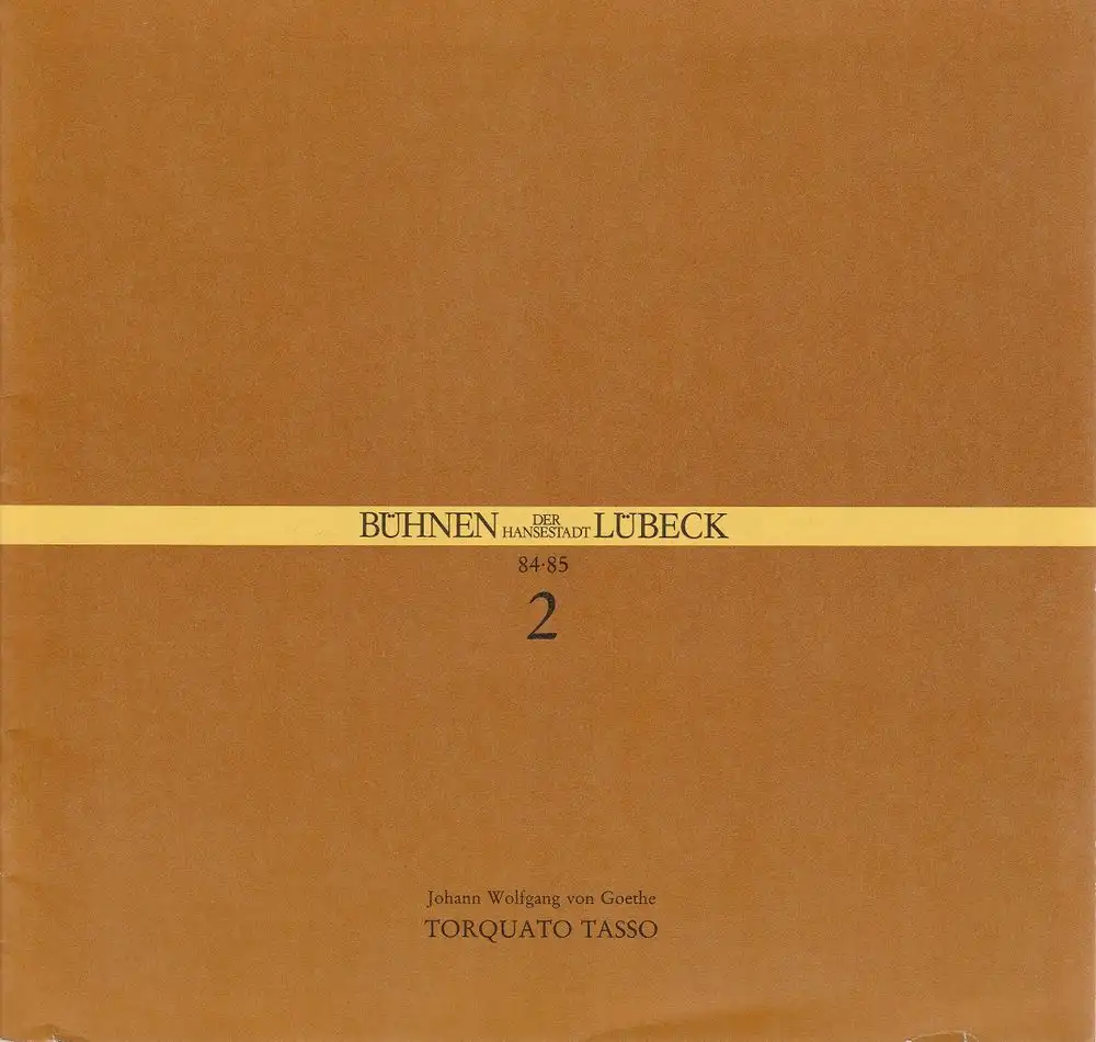 Bühnen der Hansestadt Lübeck, Hans Thoenies, Walter Hollender, Petra Schaper: Programmheft Johann Wolfgang von Goethe TORQUATO TASSO Premiere 8. September 1984 Kammerspiele Spielzeit 1984 / 85 Heft 2.