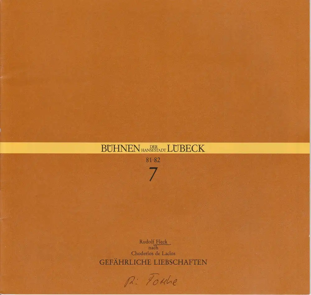 Bühnen der Hansestadt Lübeck, Hartwig Klaus: Programmheft Rudolf Fleck: Gefährliche Liebschaften. Premiere 1. November 1981 Kammerspiele Spielzeit 1981 / 82 Heft 7.