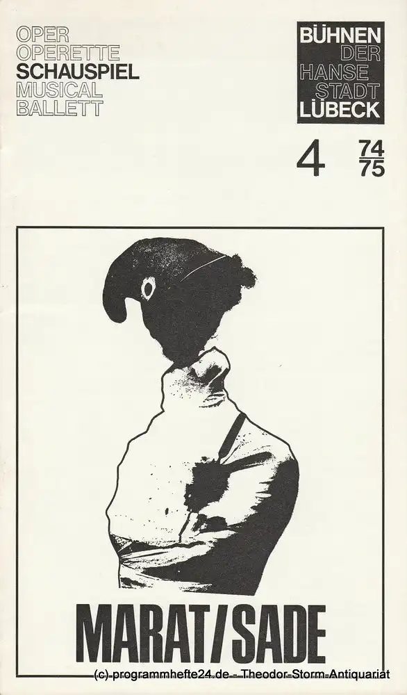Bühnen der Hansestadt Lübeck, Karl Vibach, Dirk Böttger, Ronald F. Stürzebecher: Programmheft Erstaufführung Marat / Sade. 27. September 1974. Heft 4 Spielzeit 1974 / 75.