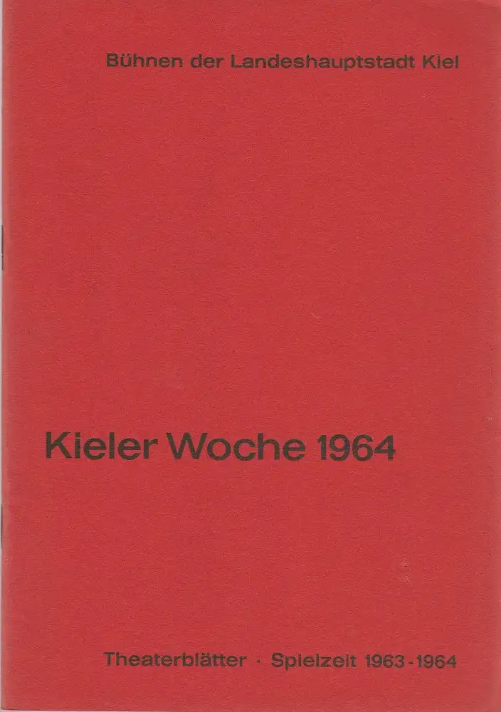 Kieler Theaterblätter. Kieler Woche 1964. Gastspiel des Schiller-Theaters Berlin. Ein Lustspiel in fünf Aufzügen. Inszenierung: Boleslaw Barlog. Bühne und Kostüme: Leni Bauer-Ecsy. Mitwirkende: Wilhelm Borchert, Eva-Katharina Schulz, Paul Wagner, Heidemarie Theobald, Eduard Wandrey, Fritz Eberth, u. a. - Theaterprogramm, Opernprogramm, Ballettprogramm, Musicalprogramm, Konzertprogramm, Theatermemorabilia, Programmhefte Sammlung, deutsche Theatergeschichte.