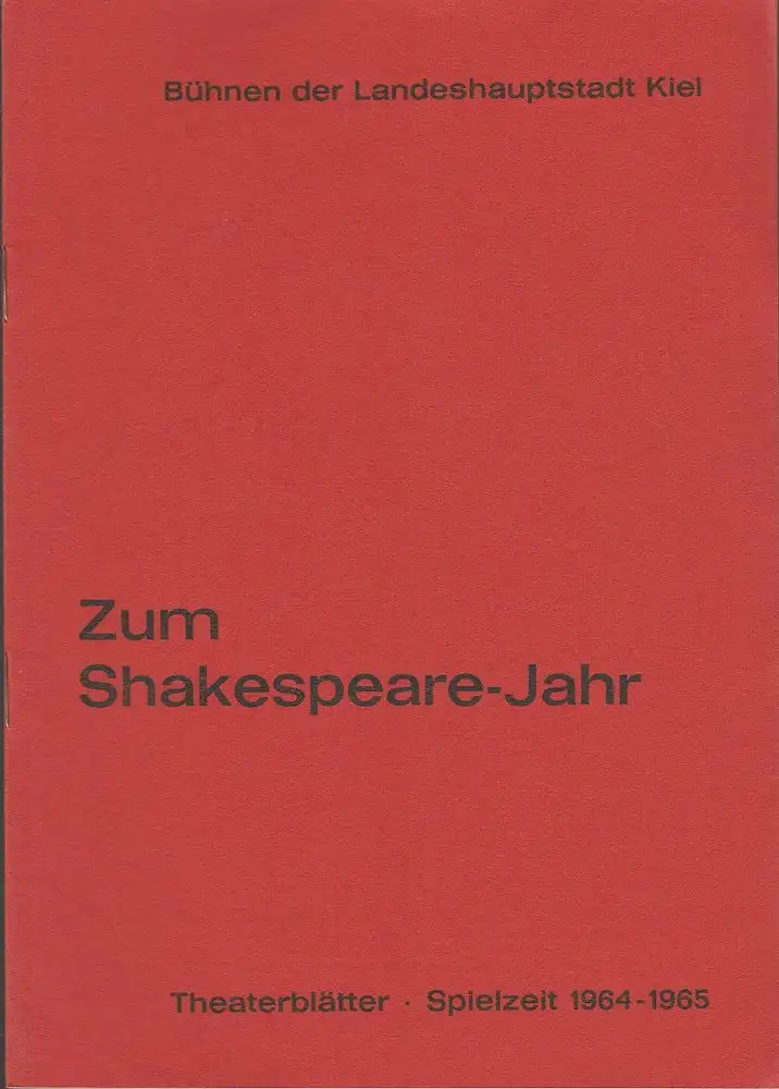 Zum Shakespeare-Jahr. Lustspiel. Übersetzt von August Wilhelm von Schlegel. Inszenierung: Heinz Schirk. Bühnenbild: Rolf Christiansen. Kostüme: Jenaette Andreae. Musik: Karl Eckert. Mitwirkende: Rudolf Grabow, Oskar Köblinger, Siegfried Munz, Rüdiger Bahr, Manfred Boehm, u. a. - Theaterprogramm, Opernprogramm, Ballettprogramm, Musicalprogramm, Konzertprogramm, Theatermemorabilia, Programmhefte Sammlung, deutsche Theatergeschichte.