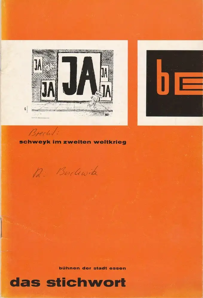 Bühnen der Stadt Essen, Erich Schumacher, Ilka Boll, Oliver Krauss: Programmheft Schweyk im zweiten Weltkrieg von Bertolt Brecht Das Stichwort 1959 / 60 Heft 15.