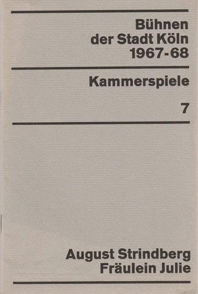 Bühnen der Stadt Köln, Egon Kochanowski, Wilhelm Steffens, Hannes Jähn: Programmheft August Strindberg FRÄULEIN JULIE Kammerspiele Spielzeit 1967 / 68 Heft 7.