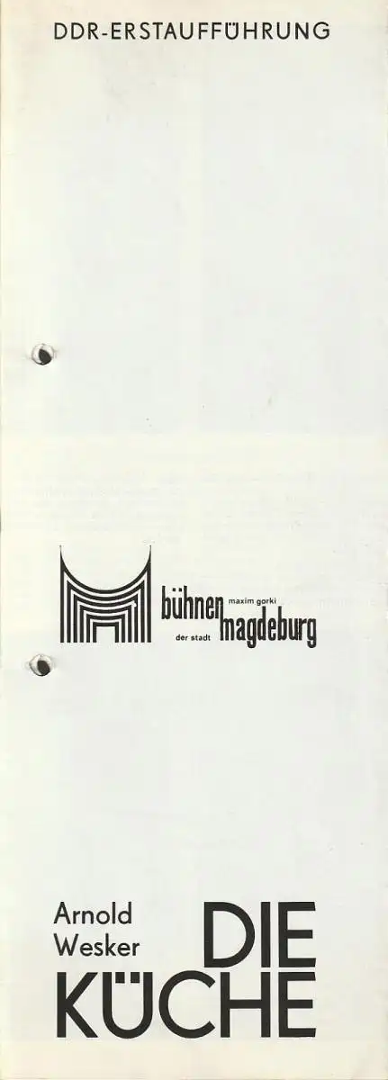 Bühnen der Stadt Magdeburg Maxim Gorki, Karl Schneider, Andreas Scheinert, Jürgen Banse: Programmheft Arnold Wesker DIE KÜCHE Premiere 27. September 1975 Spielzeit 1975 / 76.