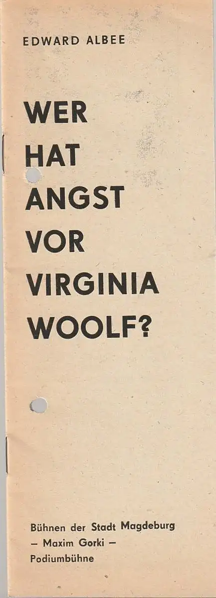 Bühnen der Stadt Magdeburg - Maxim Gorki -, Karl Schneider, Rosemarie Schauer, Marianne Janietz: Programmheft Edward Albee WER HAT ANGST VOR VIRIGINIA WOOLF Premiere 1. Juni 1984 Podiumbühne Spielzeit 1983 / 84 Heft 21.