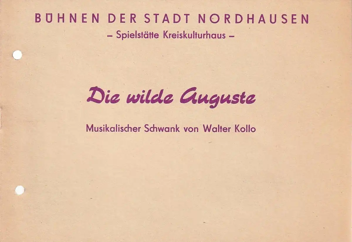Bühnen der Stadt Nordhausen, Spielstätte Kreiskulturhaus, Siegfried Mühlhaus, Ursula Jantz: Programmheft Walter Kollo DIE WILDE AUGUSTE Premiere 15. Februar 1984 Spielzeit 1983 / 84 Heft 8.