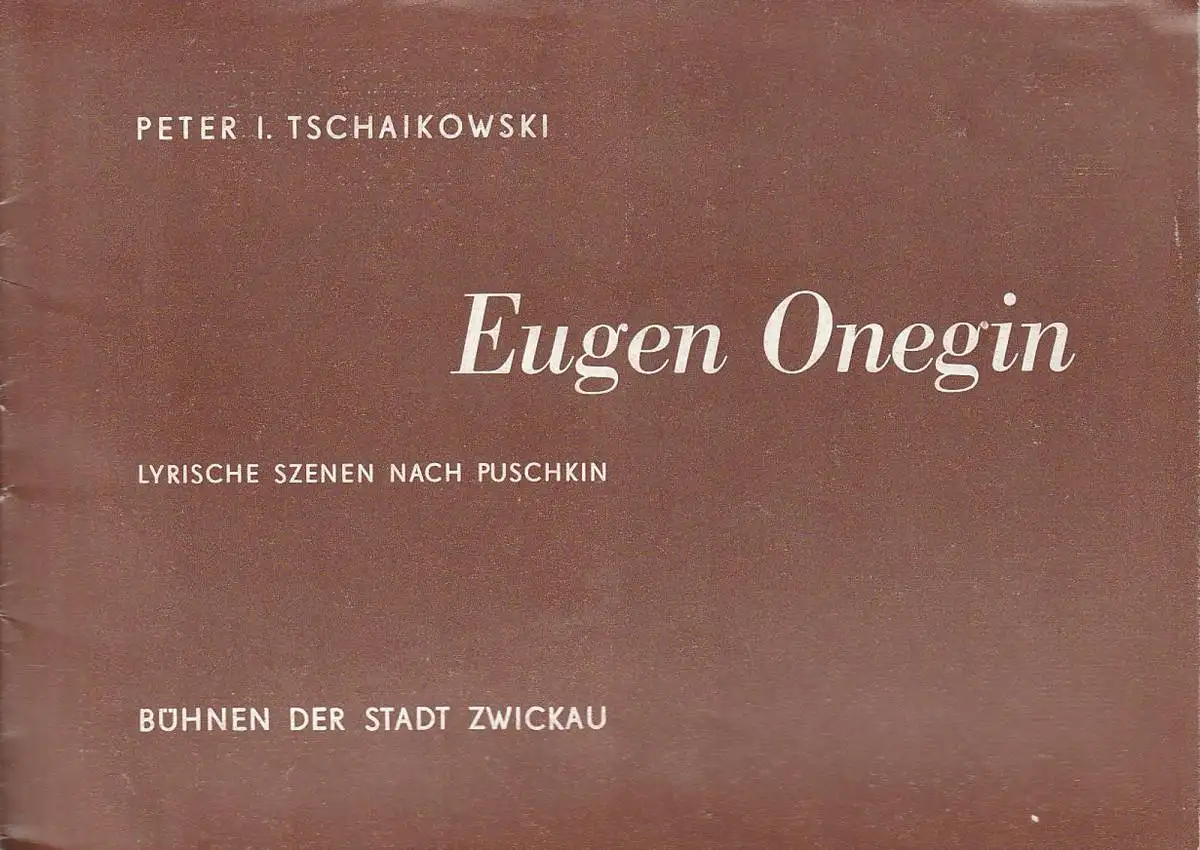 Lyrische Szenen in drei Akten op. 24 von Peter I. Tschaikowski. Text nach Alexander Puschkin. Musikalische Leitung: Albrecht Hofmann. Inszenierung: Leonore Haberkorn. Ausstattung: Peter Uhlig. Choreographie: Horst Jentsch. Regie-Assistenz: Michael Schneider. Mitwirkende: Christa Schauer / Barbara Zosel, Thea Mende, Sabine Münkner, Dorothea Grimmer, Horst Behrend, Klaus-Dolf Schubert / Vlasta Waiseitl, u. a. - Theaterprogramm, Opernprogramm, Ballettprogramm, Musicalprogramm, Konzertprogramm, Theatermemorabilia, Programmhefte Sammlung, deutsche Theatergeschichte.