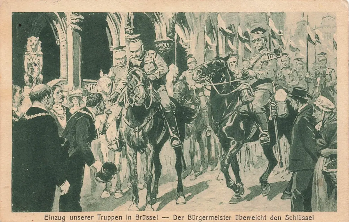 Bürgermeister überreicht Schlüssel, Einzug unserer Truppen in Brüssel, Ulanen AK