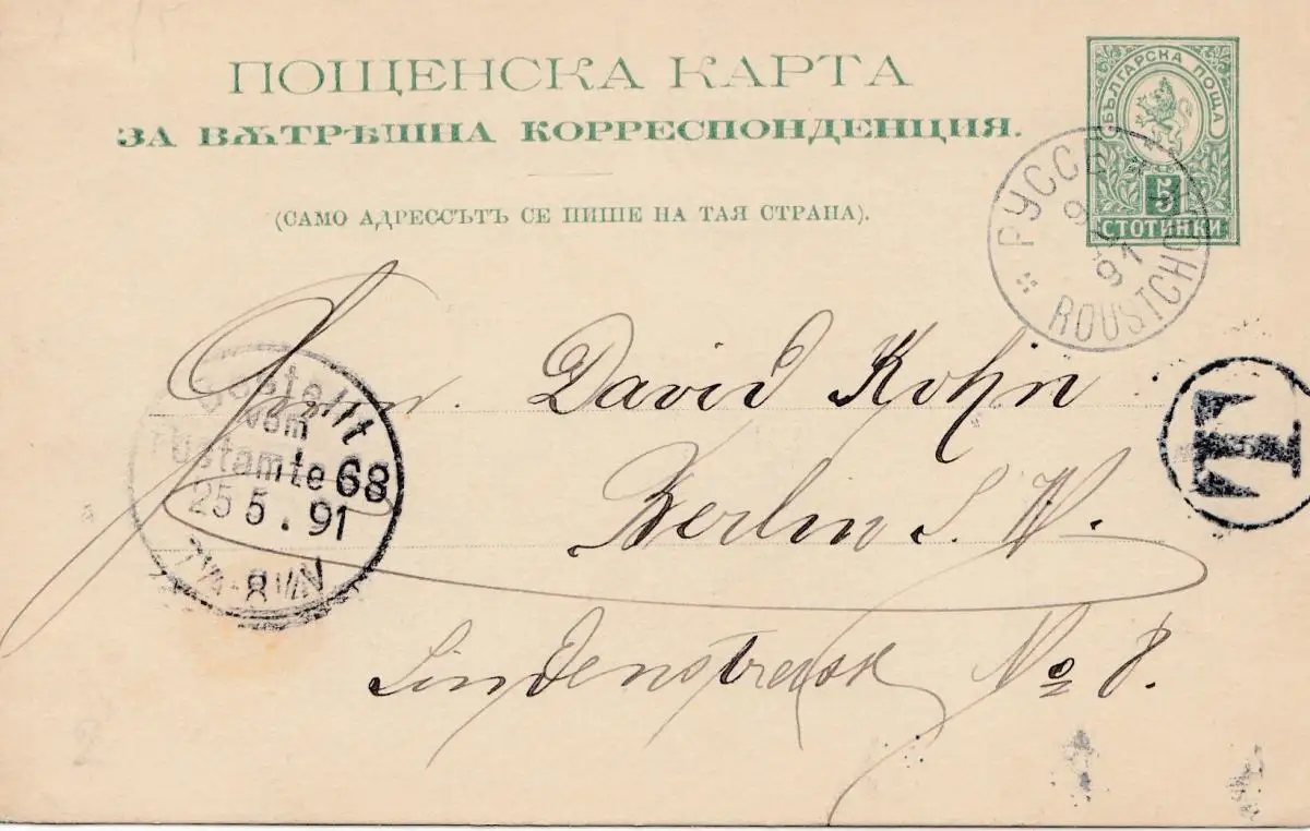 Bulgarien 1891: Ganzsache Roustchouk nach Berlin