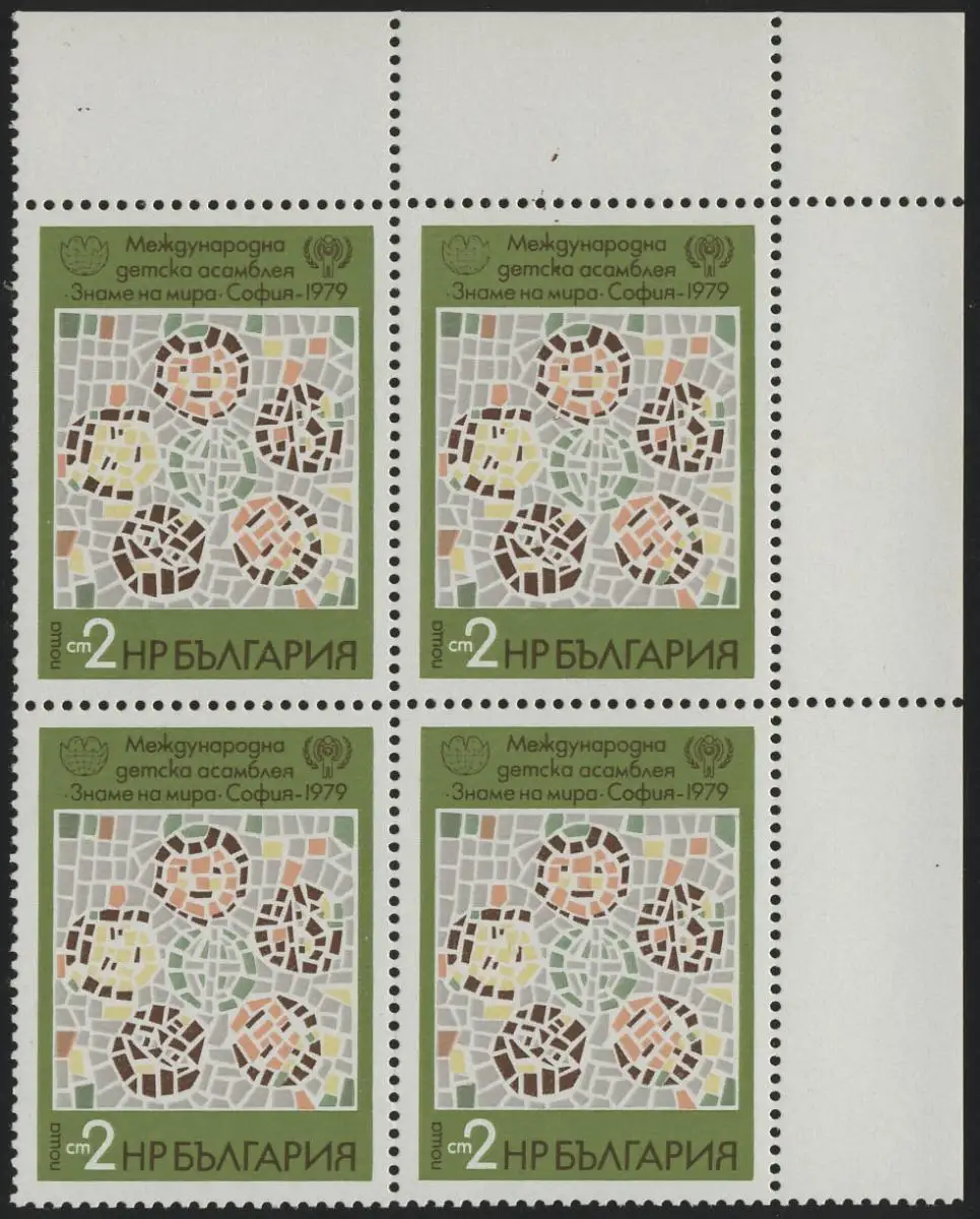 Bulgarien: Mosaik mit Kinderköpfen, Eckrand-Viererblock oben rechts **