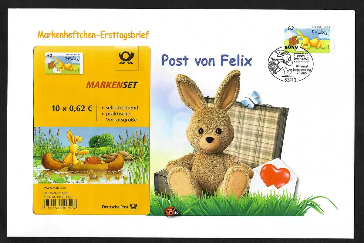 Bund 2015: Markenheftchen FDC: Post von Felix, Hase