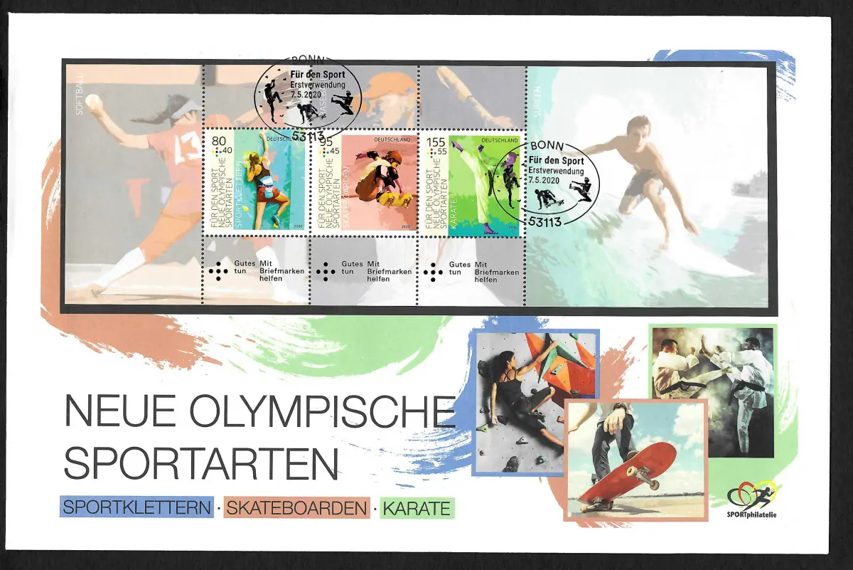 Bund: 2020: Für den Sport: Sportarten, Block aus MH auf FDC