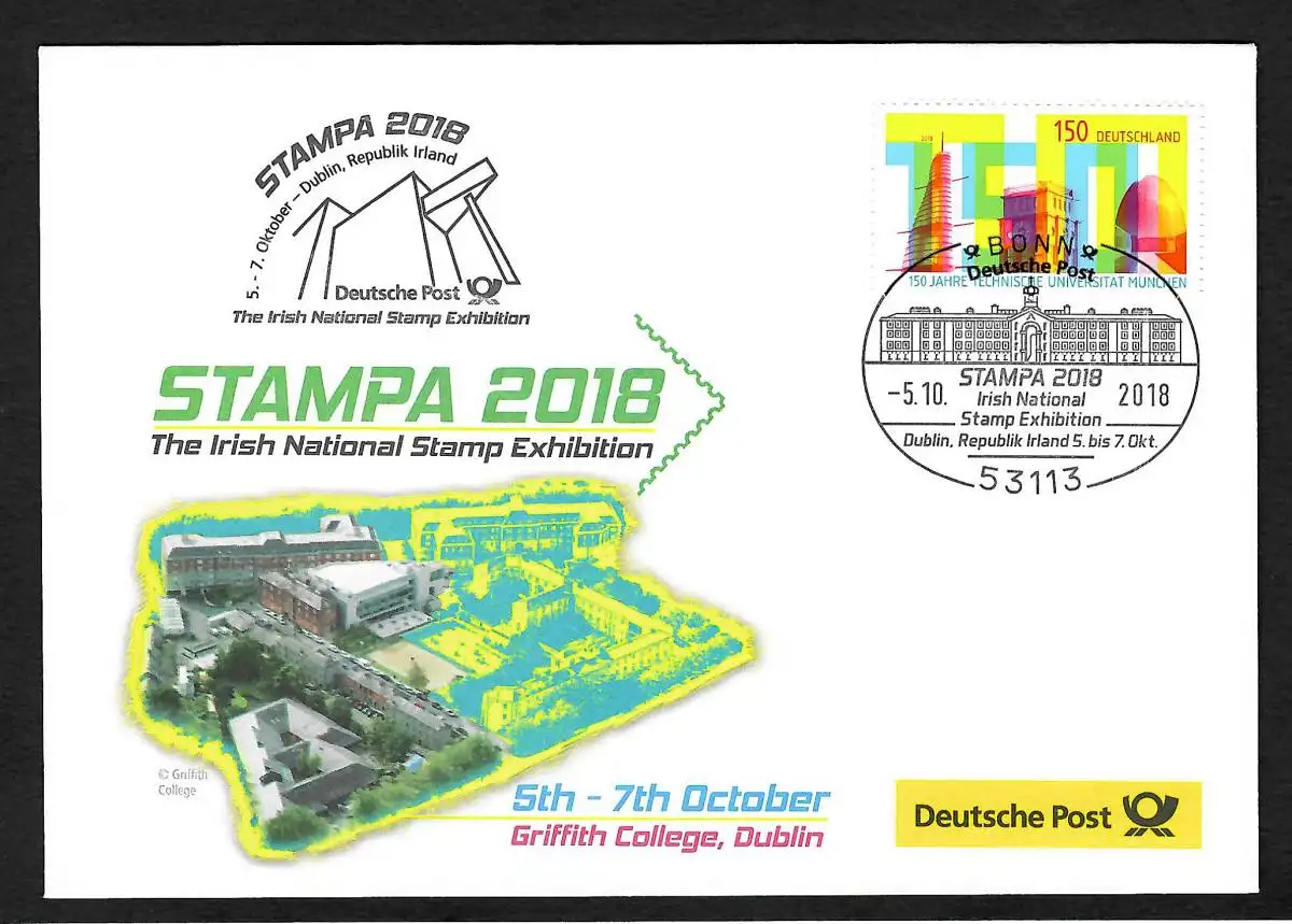 Bund: Beleg zur STAMPA 2018 in Griffith College, Dublin, Irish national Stamps