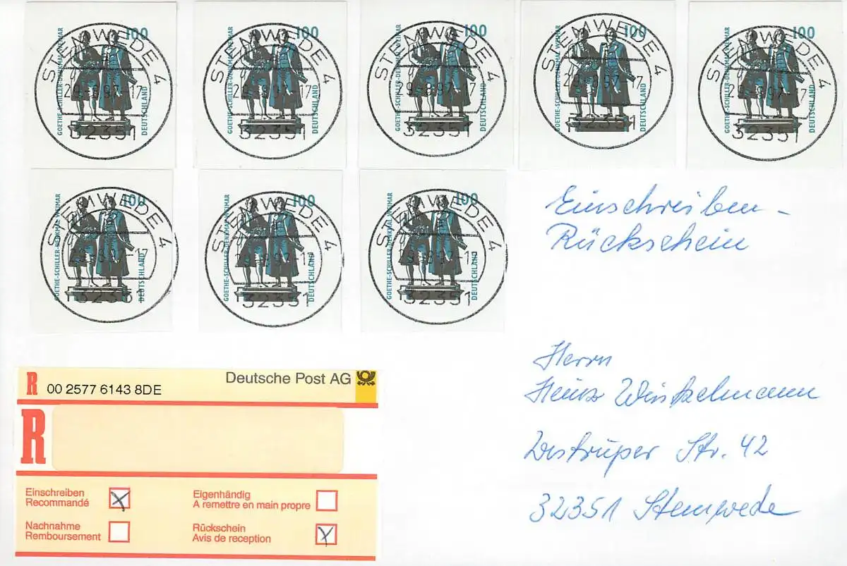 Bund: Einschreiben Stemwede mit MiNr. 1934, Mehrfachfrankatur