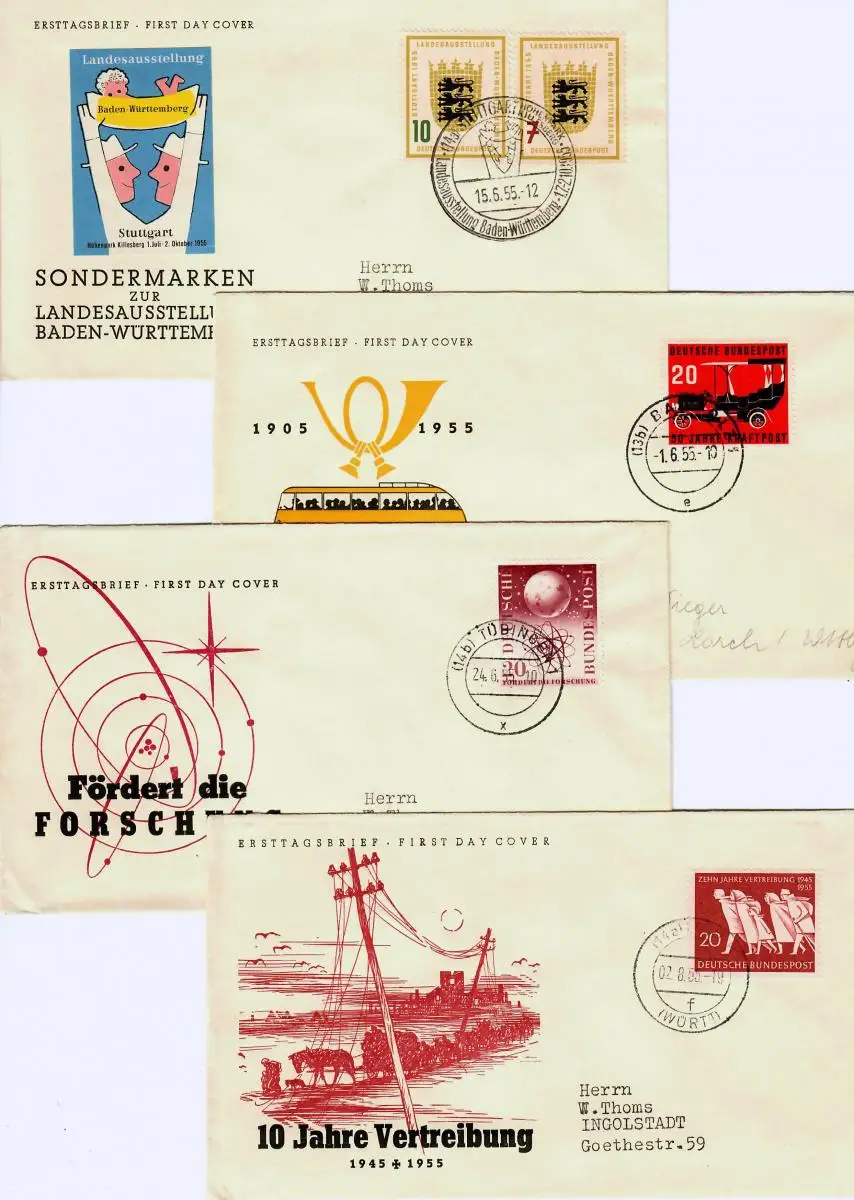 Bund: MiNr. 204-225 auf 14x FDC, teils Einschreiben