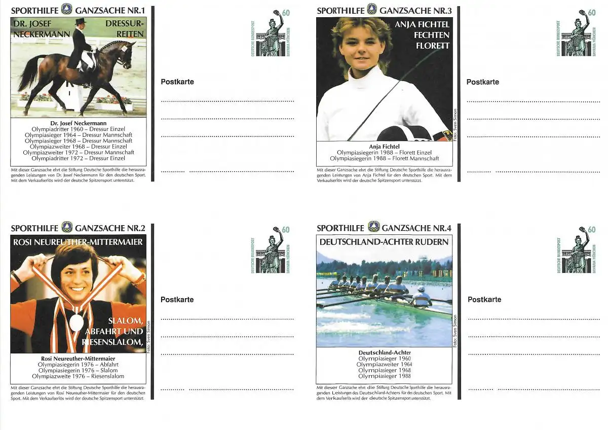 Bund Sporthilfe Ganzsachen Bogen: Nr. 1-4, DIN A4 Größe, postfrisch