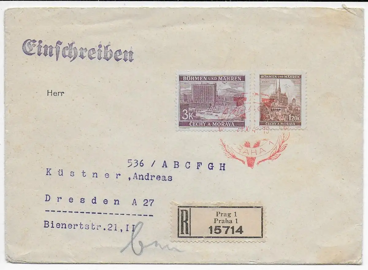 B&M 1941: Einschreiben Prag nach Dresden