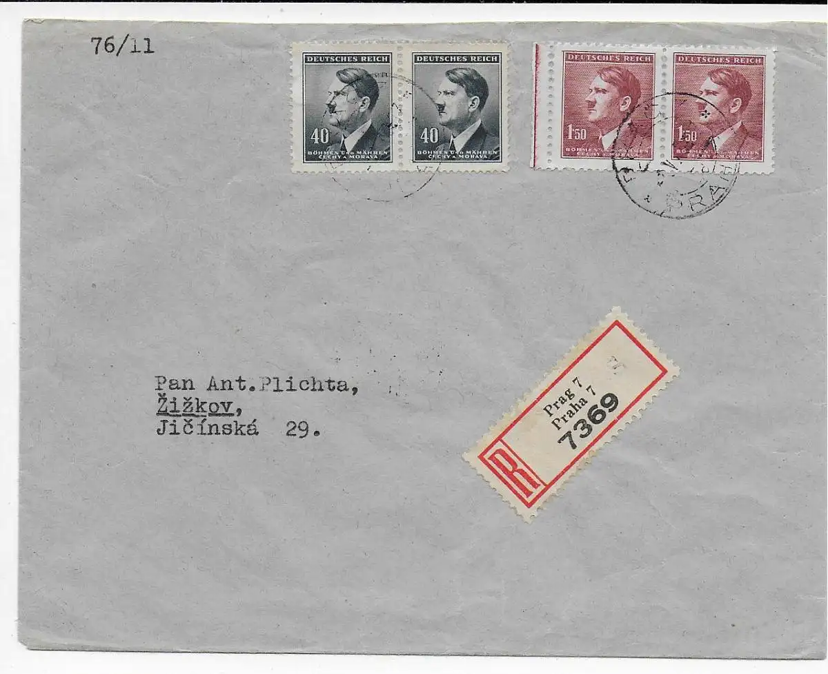 B&M: Einschreiben Prag nach Zizkov, 1943