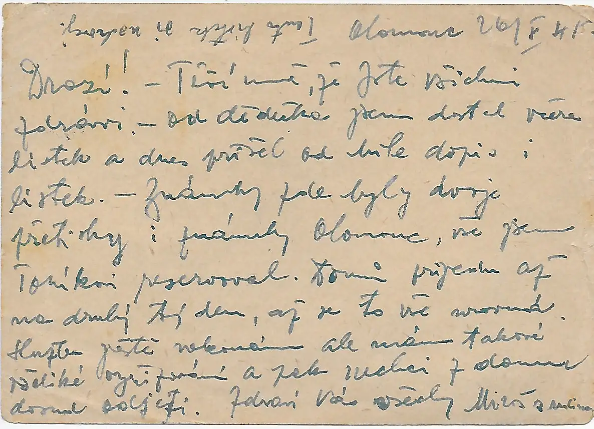 B&M: Ganzsache Olomouc 26.5.45, in bar bezahlt, Befreiung 8.5.45 - Boskonice
