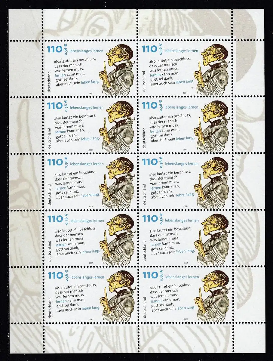 Bundesrep. Deutschland 2001 Nr Zehnerbogen 2209 Postfrisch / **