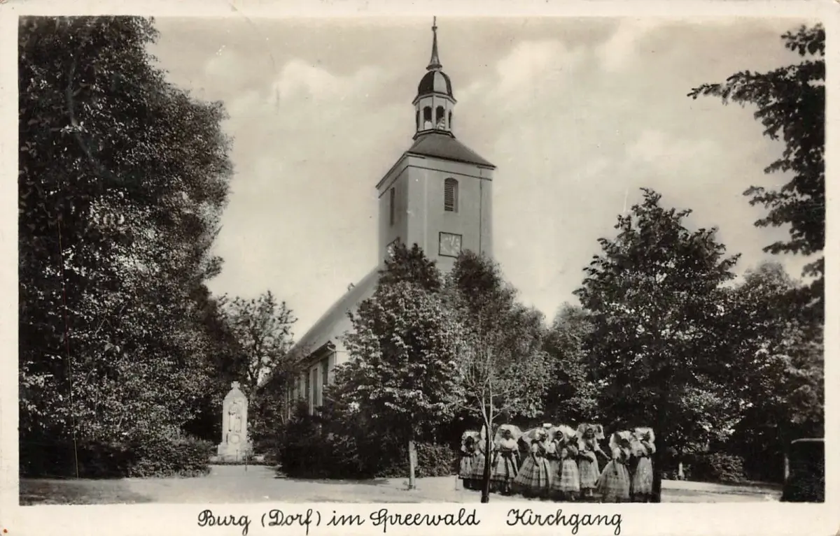 Burg (Dorf) im Spreewald Kirchgang Postkarte AK 1935